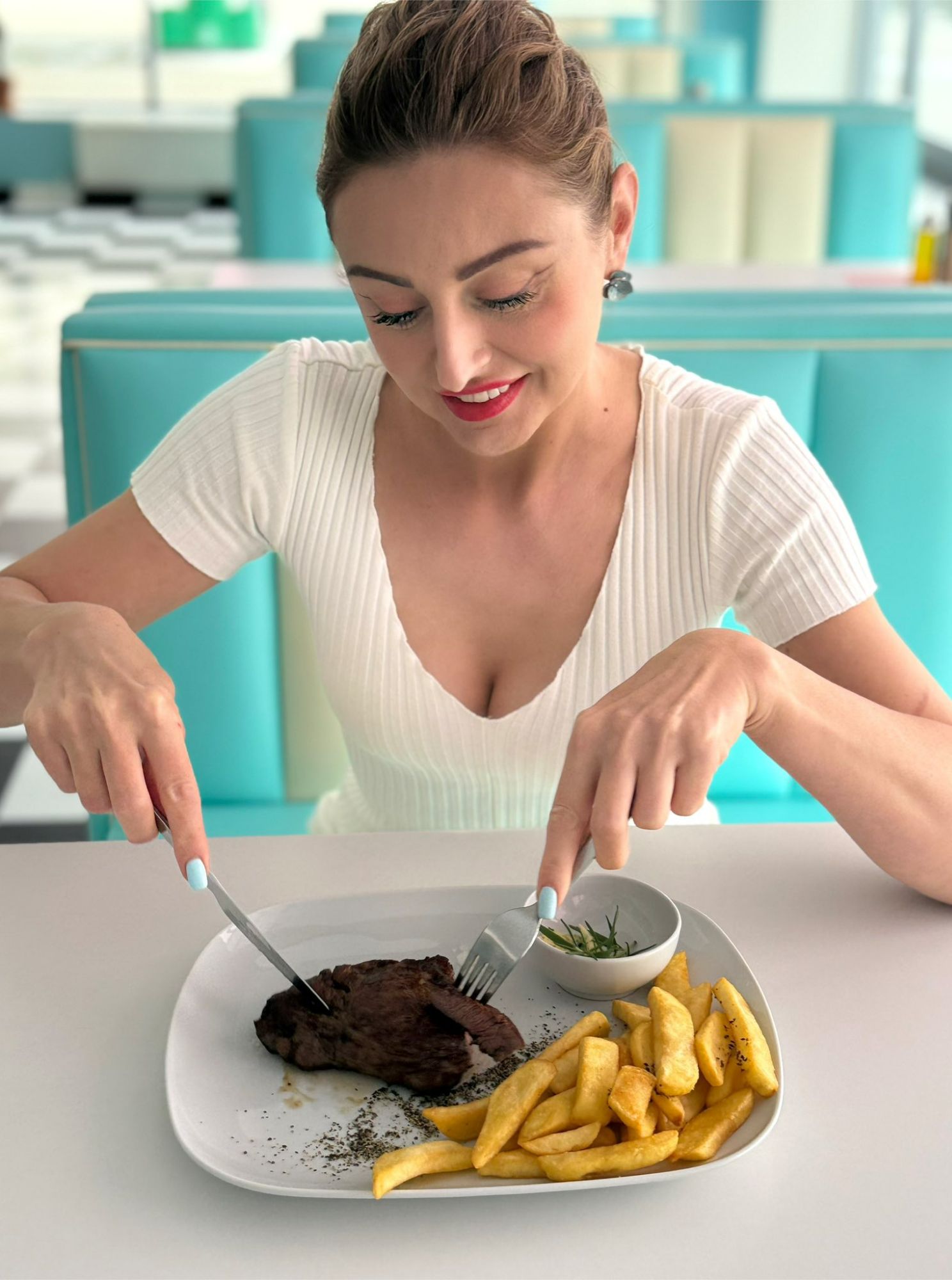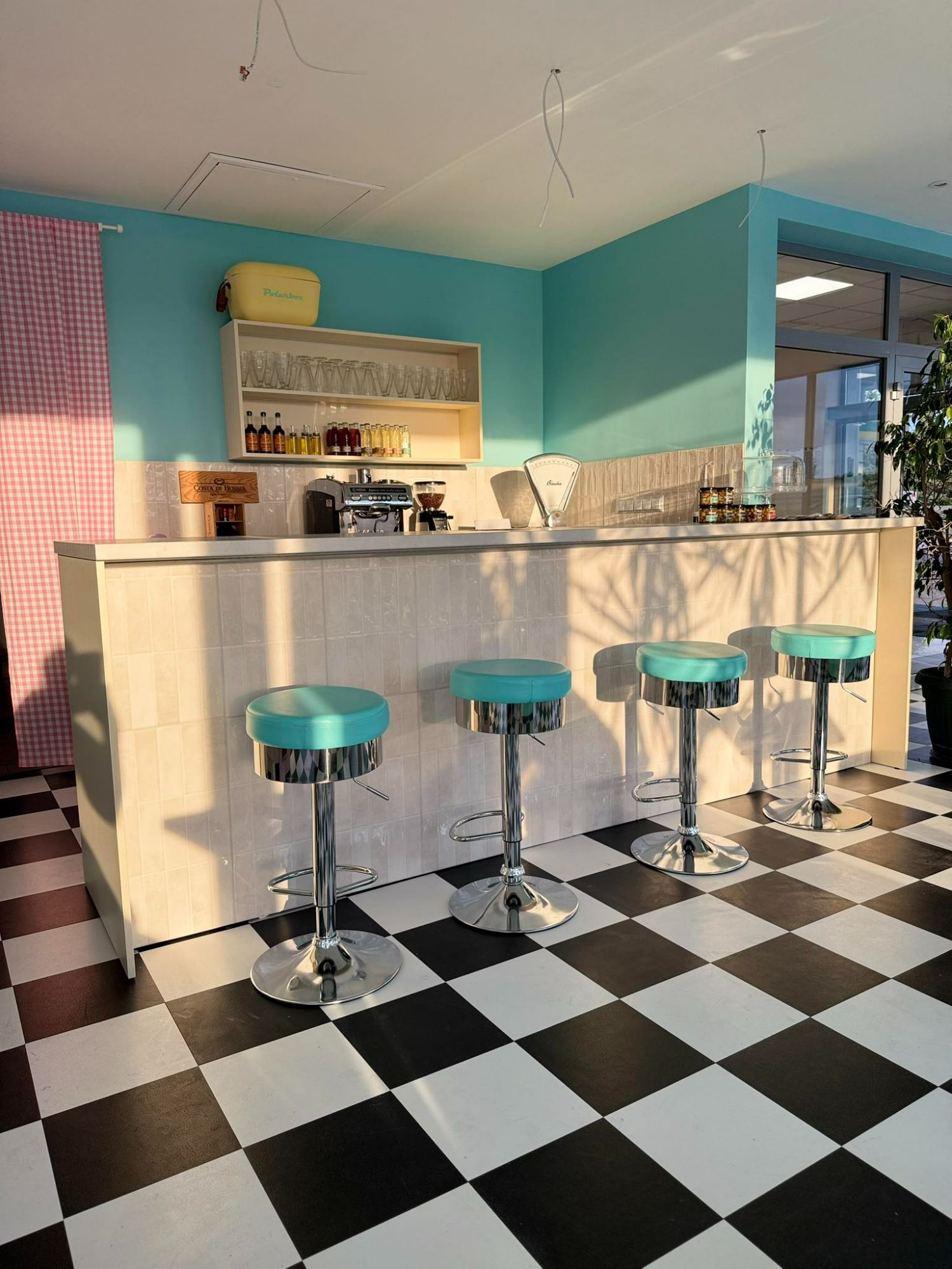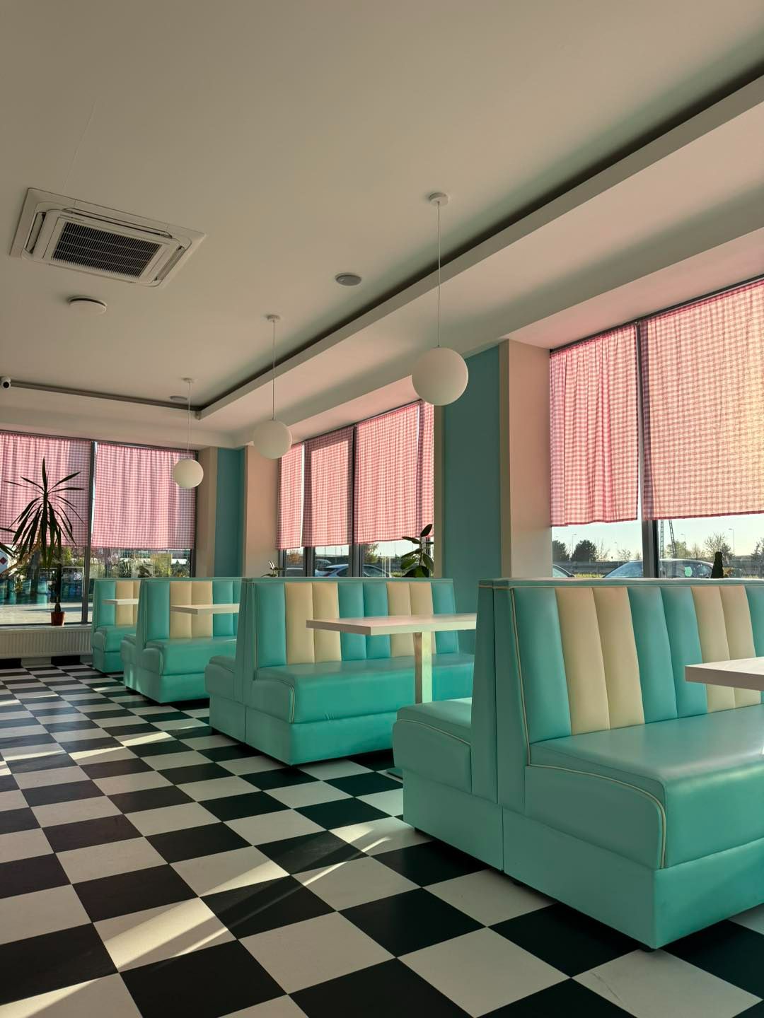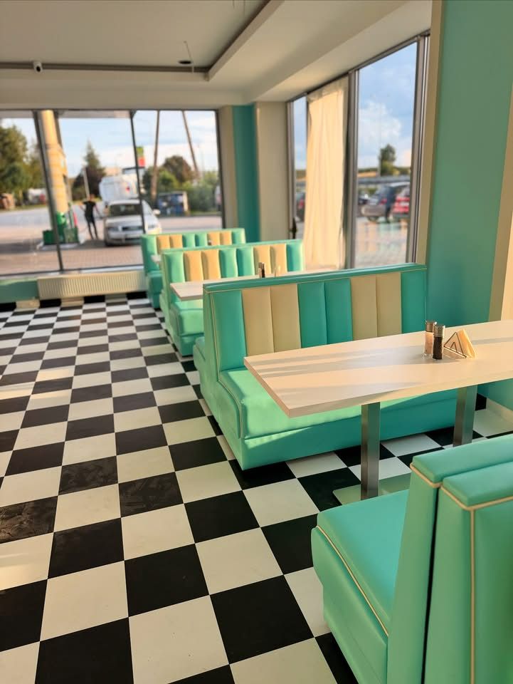 W Retro Bite Diner przenosimy naszych gości w wyjątkowy świat różu i turkusu, gdzie każdy detal wnętrza tworzy energetyczną, a jednocześnie przyjemną atmosferę. Jasne, pastelowe akcenty w połączeniu z nowoczesnym designem sprawiają, że miejsce jest zarówno przytulne, jak i pełne życia.